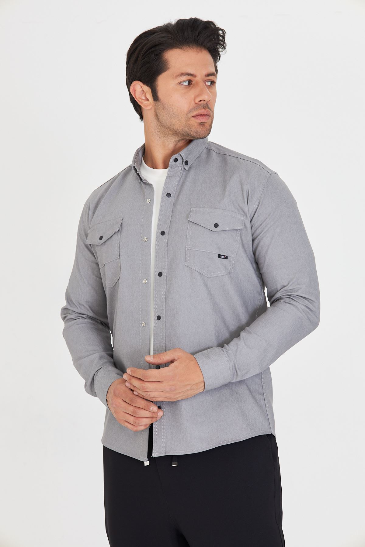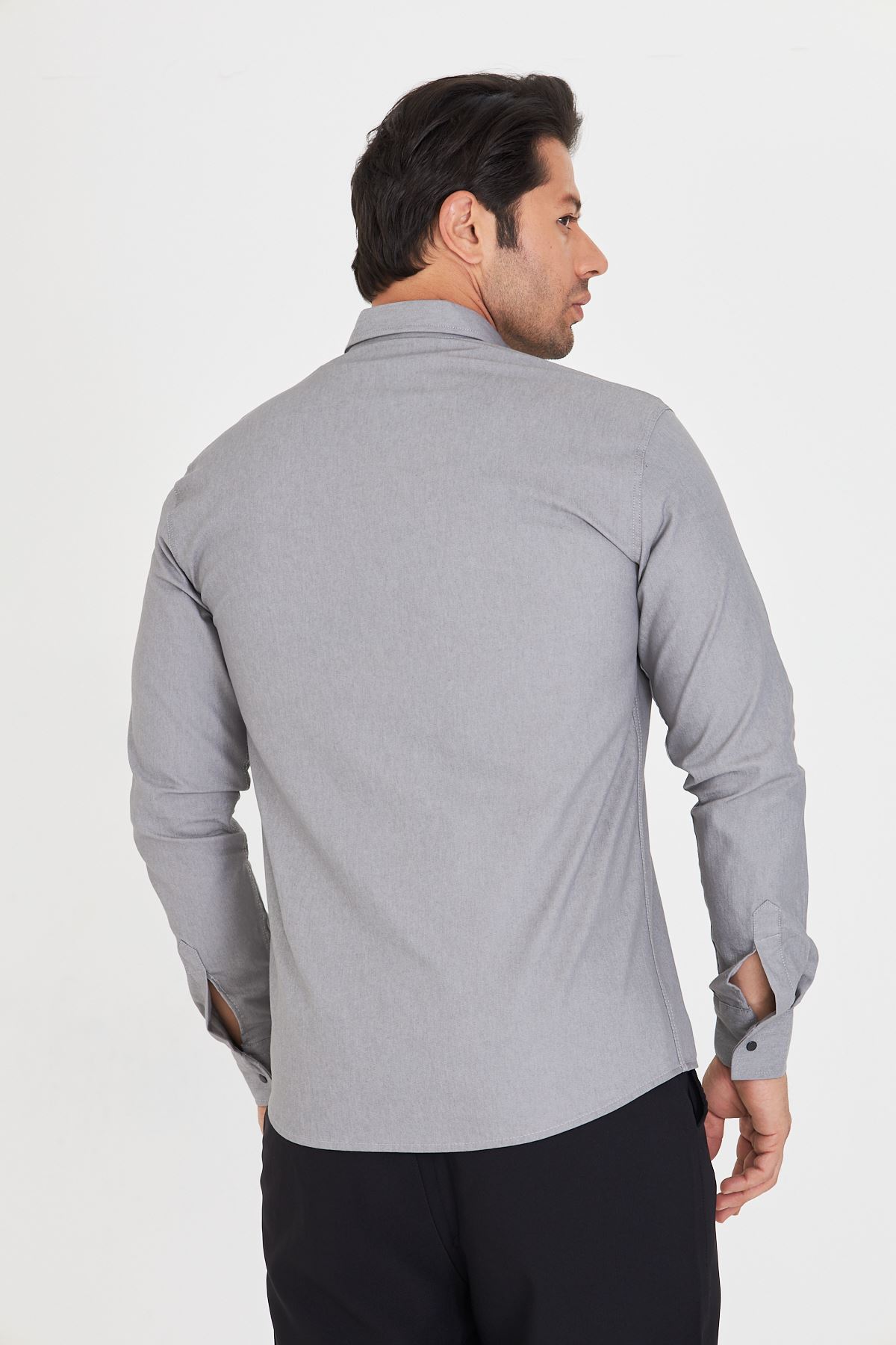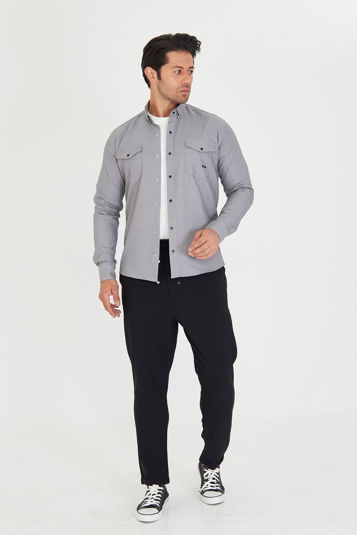 Erkek Uzun Kol Pike Kumaş Dik Yaka Günlük Kullanıma Uygun Slim Klasik Gömlek