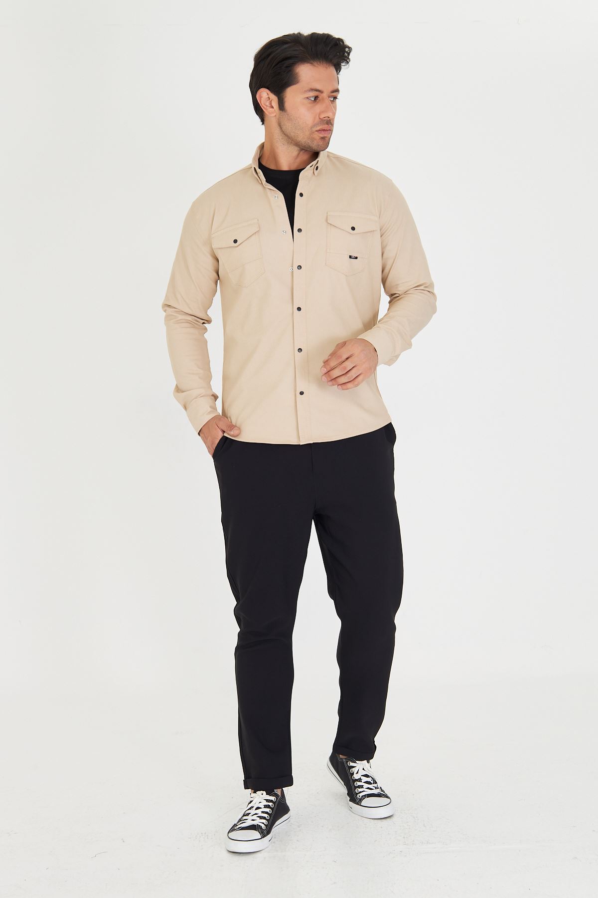Slim Fit Hakim Yaka Erkek Gömlek Günlük Kullanıma Uygun